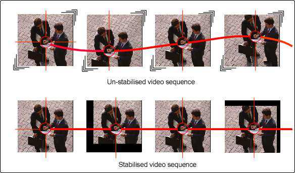 StableEyes video stabilization system operates by locking onto detail within the incoming video to differentiate between shake and background. Once locked, StableEyes repositions each video frame to remove any shake resulting in clear and steady video. This is achieved by complex software algorithms running on the very latest multimedia hardware chip - the Philips Nexperia®. StableEyes has been specially developed to cope with demanding image stabilisation situations such as noisy video sources (eg low-light cameras), movement of large objects within the scene and operation with pan, tilt and zoom installations.